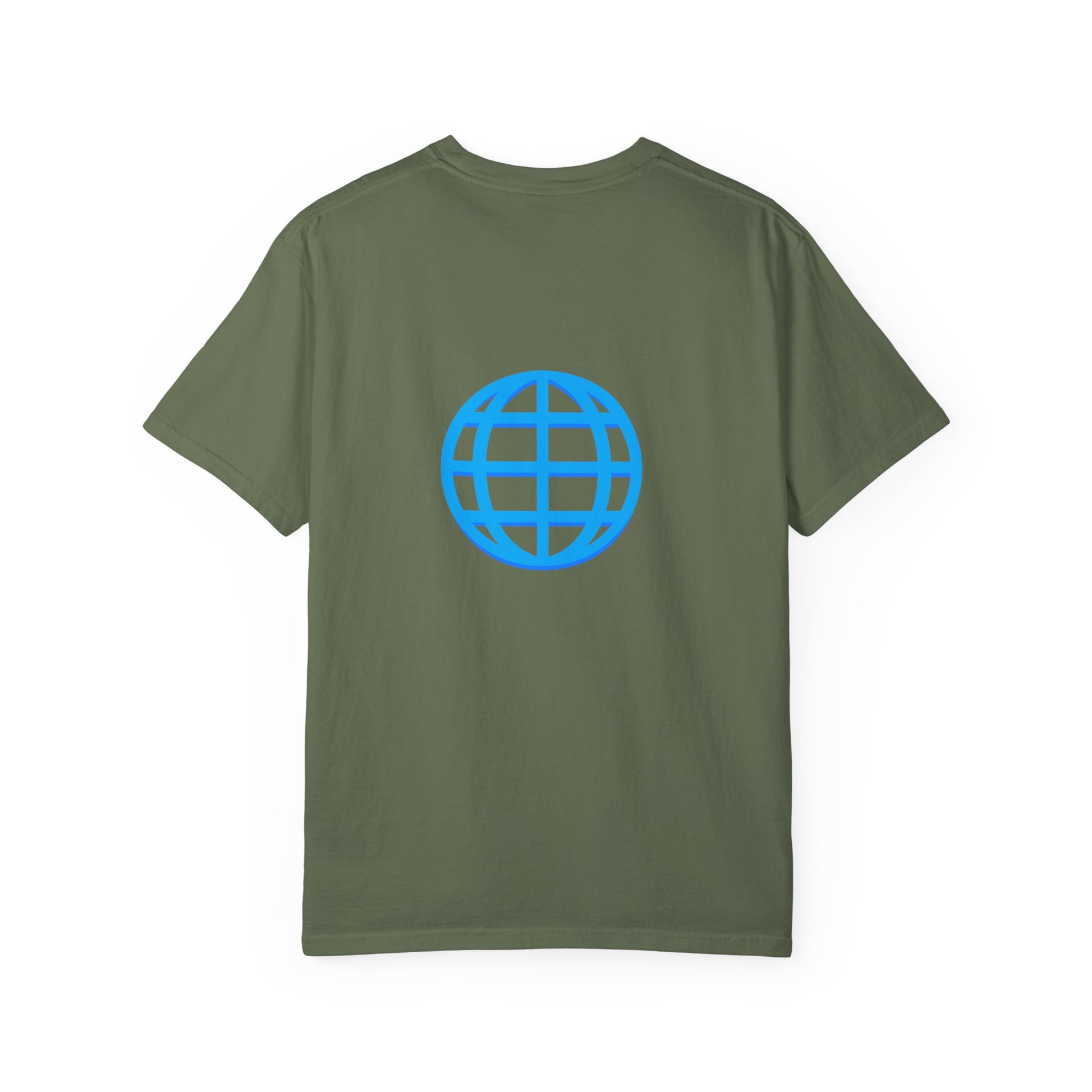 This heavyweight garment-dyed tee brings quiet confidence to everyday wear. The simple globe emblem sits centered on a soft, textured canvas — an understated nod to curiosity, travel, and connectedness. Worn loose or layered under a jacket, it settles comfortably into routines and road trips alike. The relaxed fit and garment-dyed finish soften with every wash, developing a lived-in look that feels more personal over time. It’s for people who favor subtle symbolism and tactile quality: commuters who dream of distant skylines, creators mapping their next move, or anyone who likes their statement to be calm rather than loud.